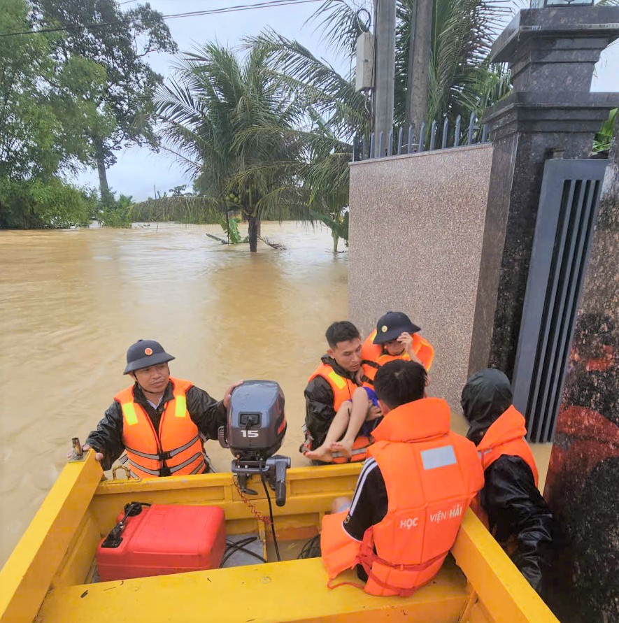 Tính đến ngày 21/11, lực lượng của Học viện Hải quân đã giúp đỡ hàng trăm hộ dân, đưa hơn 300 người dân ra khỏi vùng nguy hiểm đến nơi an toàn; hỗ trợ bà con 40 ký lương khô, 130 thùng mì tôm, 100 thùng nước lọc và nhiều vật chất cứu hộ khác giá trị hơn 80 triệu đồng.