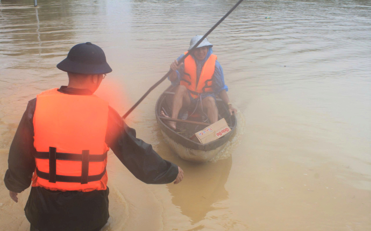 Cán bộ Học viện Hải quân dầm mình đưa người dân ra khỏi khu vực mất an toàn