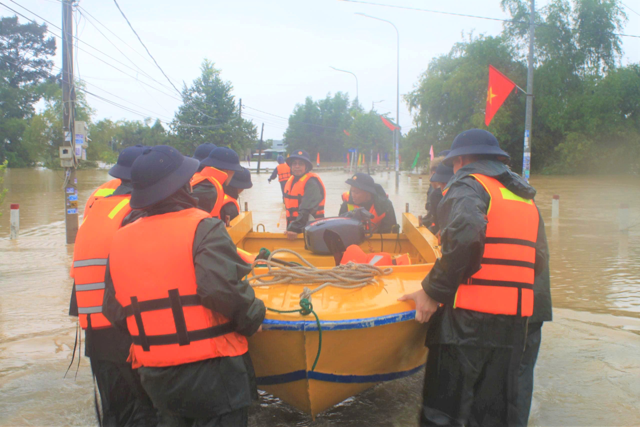 Học viện Hải quân chủ động phối hợp chính quyền địa phương huy động gần 100 cán bộ, học viên tham gia giúp nhân dân; 4 xe ô tô các loại, 2 xuồng máy và nhiều trang bị, vật chất bảo đảm cùng nhu yếu phẩm xuyên đến với bà con khu vực vùng lũ, những địa bàn bị ngập năng, cô lập cục bộ.